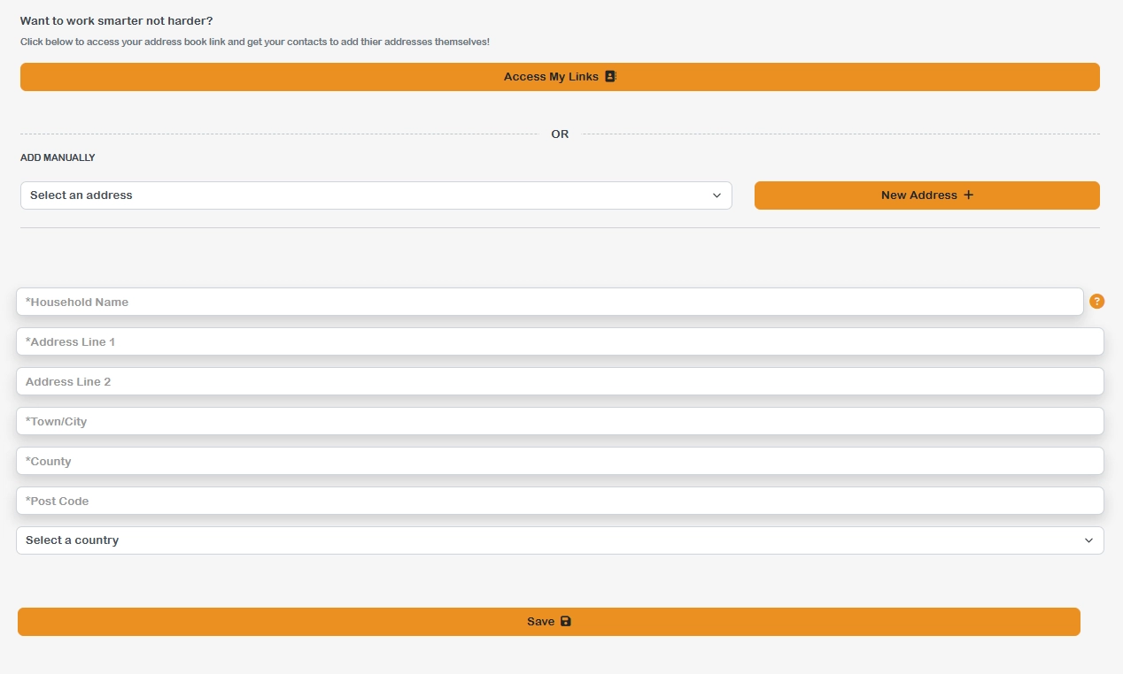 Households act as simple labels for the addresses you use, making it easier to send gifts to the same place again. We know entering the same details repeatedly can get tiring, so our households feature lets you name an address and save it. This way, sending gifts to familiar places is quick, easy, and completely fuss free.